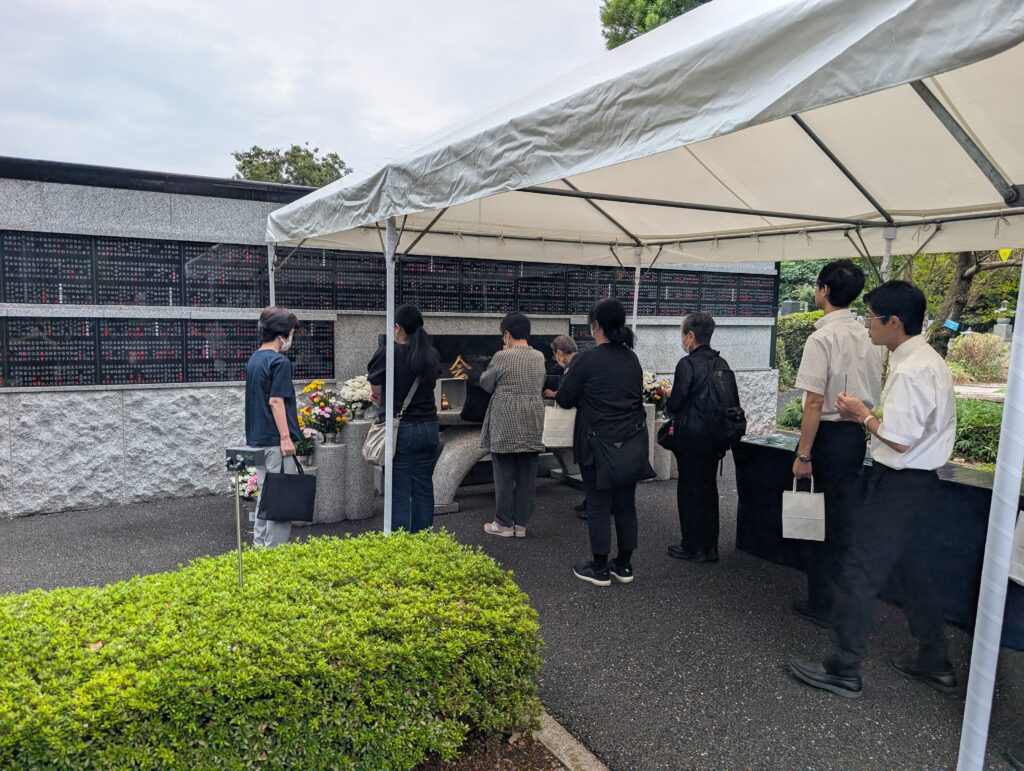 合同慰霊祭閉式後、皆様には合祀墓にて線香をお手向けいただきました。