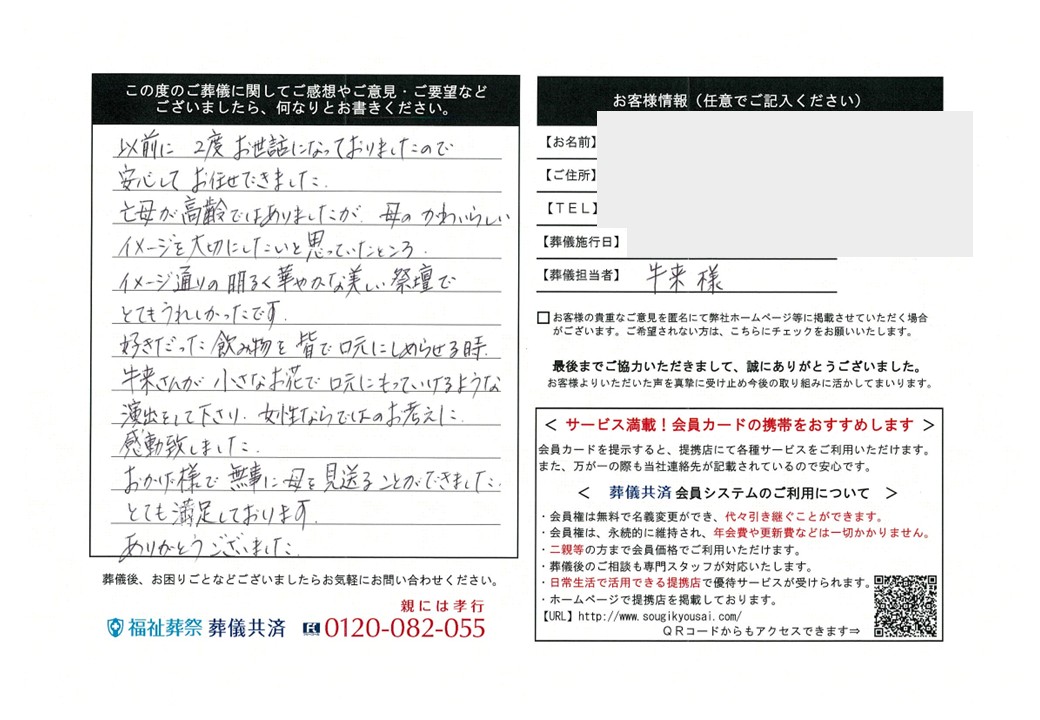十分な時間をかけてプランを吟味いただけるため、後悔のない納得のいくお葬式が実現します。