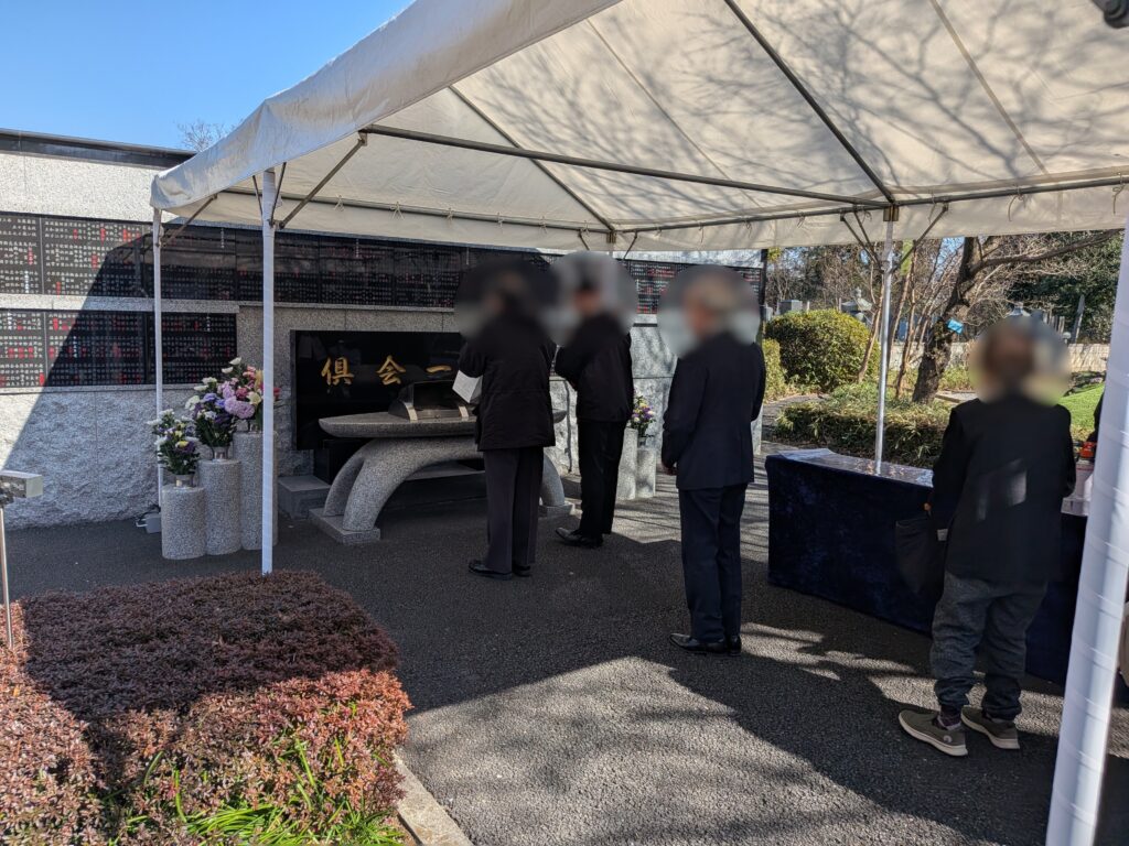 その後、合祀墓へと移動し、松福寺様による読経の中、合祀・焼香と儀式は粛々と進行しました。