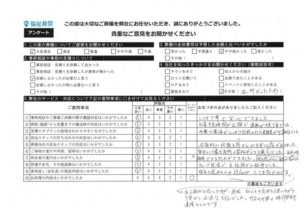 お客様の声 | 埼玉県の葬儀・家族葬は福祉葬祭