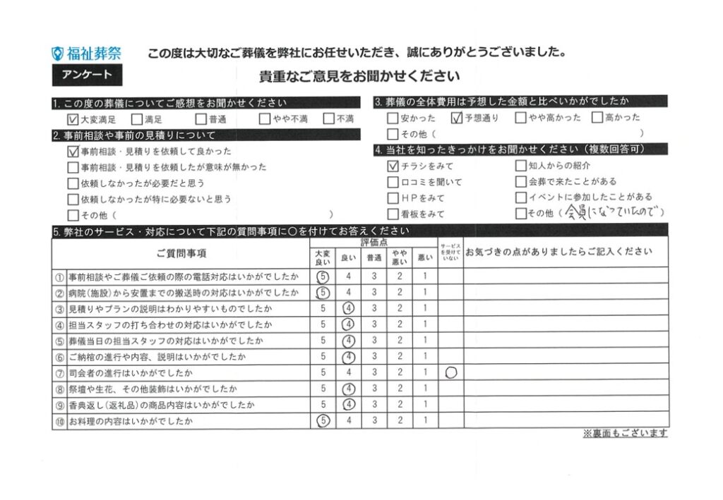 お客様の声 | 埼玉県の葬儀・家族葬は福祉葬祭