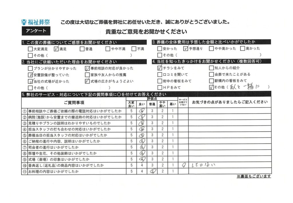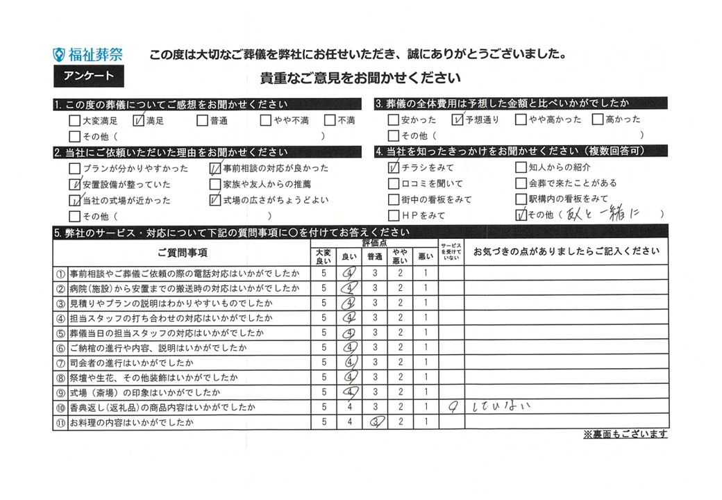 【さいたま市桜区】安心してすべてをお願いできた2026.01.04 大変世話様になりました。気持ちの良い方々で安心して全てお願いできた事、有難かったです。 12月の旅行の案内もいただき、参加させていただきました。また是非案内をいただけましたらと思います。 こんなサービスがある事も知り、気持ちの切り替えが出来ました。本当にありがとうございました。