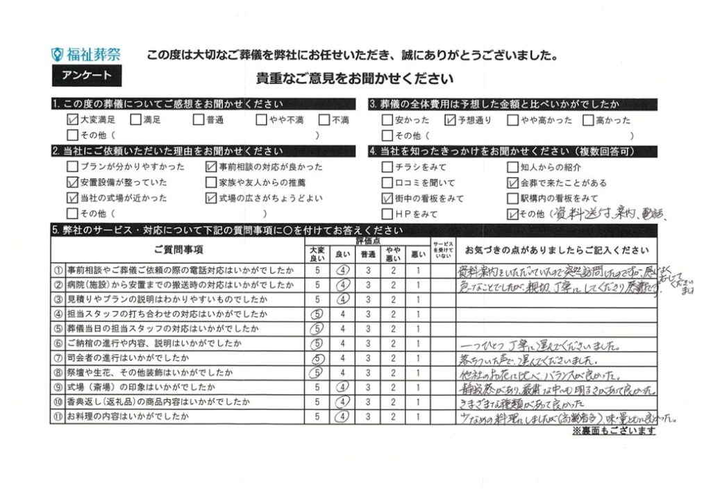 【吉川市】急な対応にもかかわらず親切2026.01.04 急な対応にもかかわらず、親切、ていねいな扱いをしてくださり、本当に助かりました。 また、地元とのご縁もあり、当家と関わりのご住職との連携もスムーズにでき、とても有難かったです。スタッフの方々、皆さまとても快く笑顔で応じてくださり、感謝いたします。