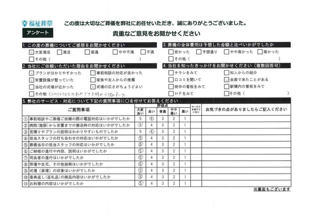 お客様の声 | 埼玉県の葬儀・家族葬は福祉葬祭