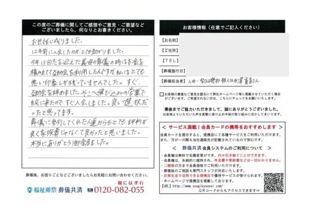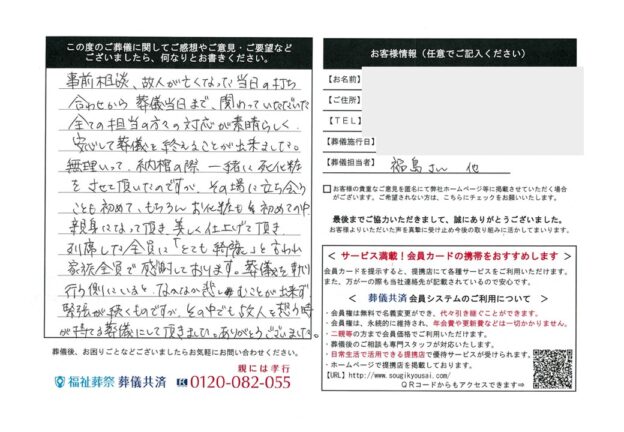 その後、合祀墓へと移動し、松福寺様による読経の中、合祀・焼香と儀式は粛々と進行しました。合祀式の後はご参加いただいたご家族の皆様に、福祉葬祭からプレゼントをお渡しいたしました。